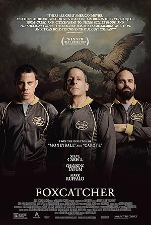 実話を基にした『フォックスキャッチャー』は、エキセントリックな大富豪と2人のチャンピオン・レスラーの、ありそうでなかった関係を描いたダークで魅力的な物語である。オリンピック金メダリストのレスラー、マーク・シュルツ(チャニング・テイタム)は、大富豪の相続人ジョン・デュポン(スティーブ・カレル)から、デュポンの屋敷に移り住み、彼の最新鋭のトレーニング施設で1988年のソウル・オリンピックを目指すチームの結成を手伝わないかと誘われたとき、シュルツはトレーニングに集中し、彼や尊敬する弟のデイブ(マーク・ラファロ)のようなオリンピック級のアスリートのような貧困にあえぐ状況からようやく抜け出したいと思い、その機会に飛びつく。隠された欲求に突き動かされたデュポンは、シュルツの金メダルへの挑戦と、世界クラスのレスリングチームの "コーチ "を務めるチャンスを、仲間や、さらに重要なことだが反対する母親(ヴァネッサ・レッドグレイヴ)から、とらえどころのない尊敬を得るチャンスだと考える。デュポンの荘厳だが息苦しい世界に閉じ込められたマークは、恩人を自己中心的で傲慢、利己的な誇大妄想狂と見るようになり、次第に軽蔑するようになる。当初は協力的だったデュポンの気まぐれな性格が豹変し、マークを不健康なライフスタイルに誘い込み、トレーニングの成果を台無しにしようとする。やがてデュポンの常軌を逸した行動と脅迫的な心理的駆け引きが、アスリートの環境、安定性、モチベーションを蝕み始める。一方デュポンは、デュポンに欠けている自信を漂わせるデイブに執着するようになる。やがてデュポンは、世界最強のレスラーから自分が切実に望む尊敬を買うことができないことに気づく。デュポンのパラノイアと兄弟からの疎外感の増大により、人間関係は複雑化していく。